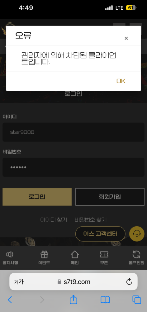 어스라는 사이트 초반에 쿠폰도 잘주고 환전도 몇번 잘 해주더니 오늘 5콩으로 195 만들어서 환전신청 하니까 바로 차단박고 친구껄로 가입해서 문의넣으니까 바로 계정 정지시켜버리네요 ㅋㅋㅋㅋㅋ